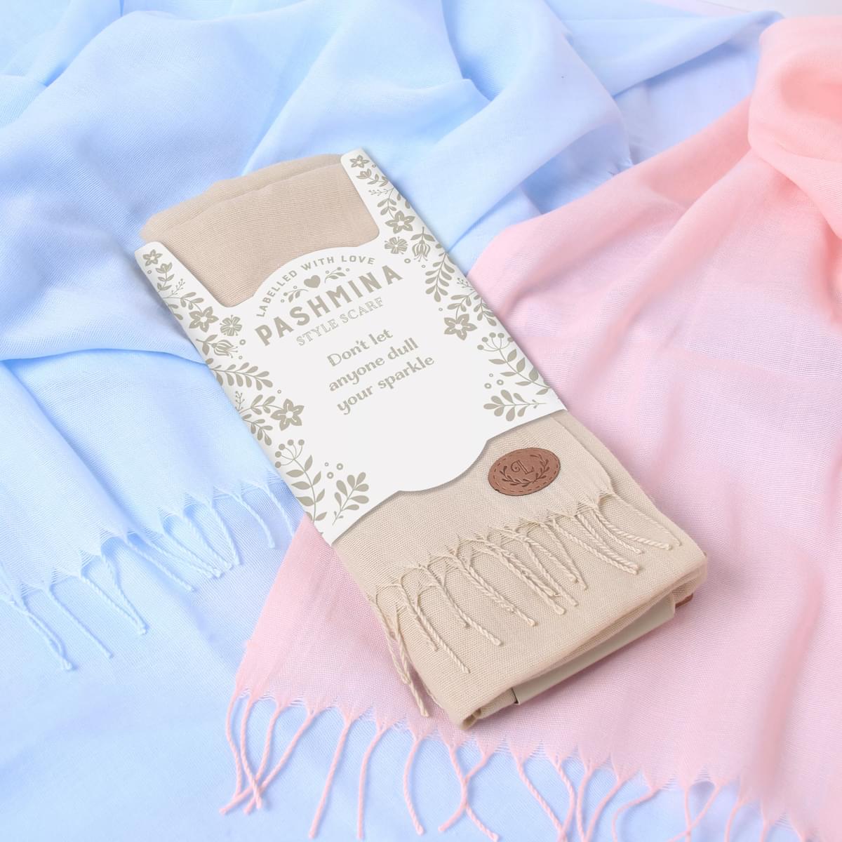Pre-personalised with heat-pressed family names and monograms. The perfect gift idea, the pashmina scarf comes in pretty floral packaging that features sweet sentiments. Please note that the items are pre-personalised. The name or title you select is what you will receive.